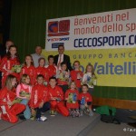 Un evento che rappresenta una vera e propria vetrina dei protagonisti della stagione agonistica di atletica leggera, un momento per ritrovarsi e festeggiare un movimento veramente in saluto che ogni anno regala molte soddisfazioni ad atleti, società, dirigenti e tecnici. Ecco quindi che sul palco, applauditi dai 300 presenti, sono salite in primis le società che nel corso del 2015 hanno vinto i vari campionato provinciali di società oppure regionali o nazionali: Atletica Alta Valtellina, G.P. Santi Nuova Olonio, G.P. Valchiavenna, G.S. CSI Morbegno, G.S. Valgerola, C.O. Piateda, Pol. Albosaggia, A.S. Lanzada. Spazio poi ai 126 piccoli atleti, appartenenti alle categorie esordienti, ragazzi e cadetti, che hanno partecipato al numero minimo previsto di gare (una per ogni specialità dell’atletica ovvero corsa campestre, su strada, montagna e pista) per ottenere il premio del Trofeo Giovanile 2015 – Circuito Credito Valtellinese. A seguire il palco è stato occupato dai 158 campionati provinciali – sembrano tanti ma tante sono le categorie e le specialità – che hanno ricevuto la maglia “campione provinciale 2015”.