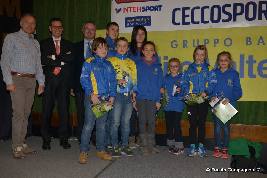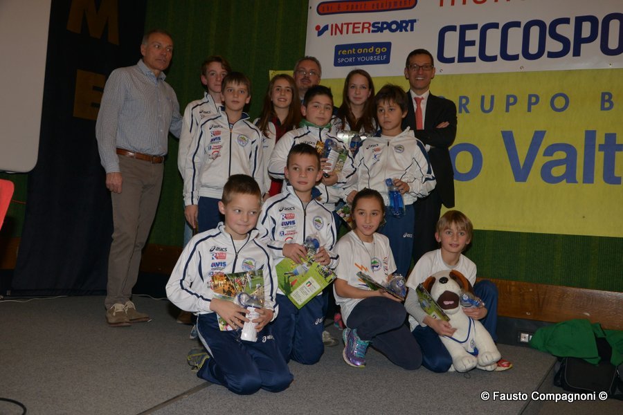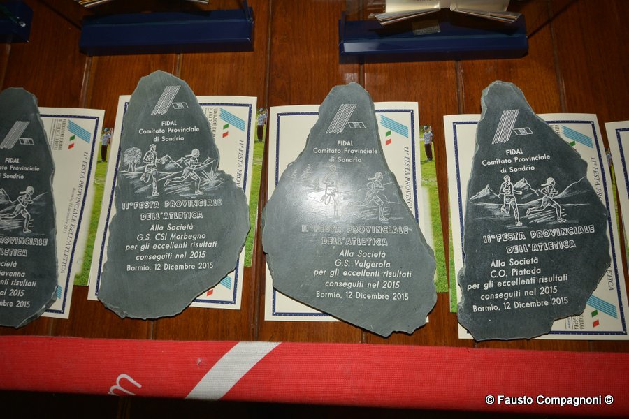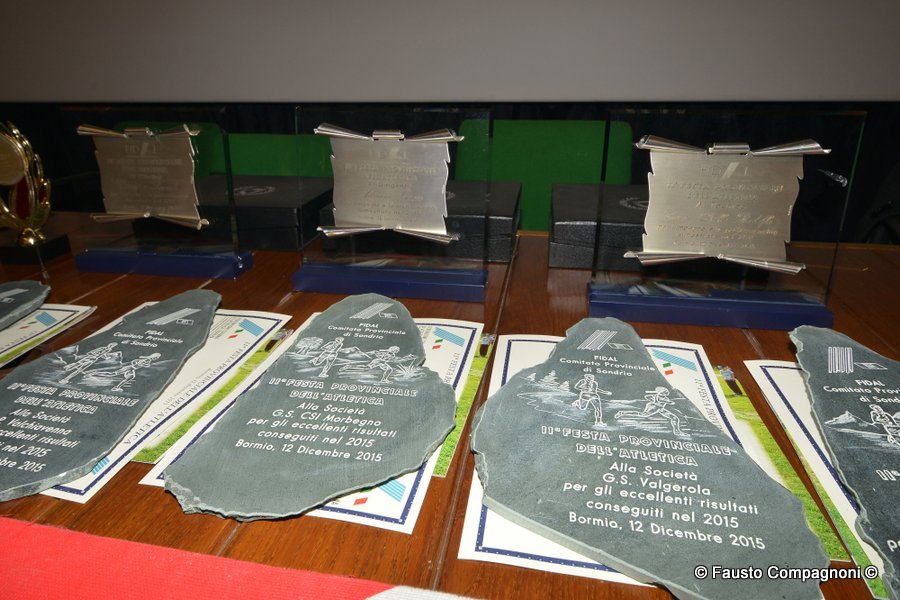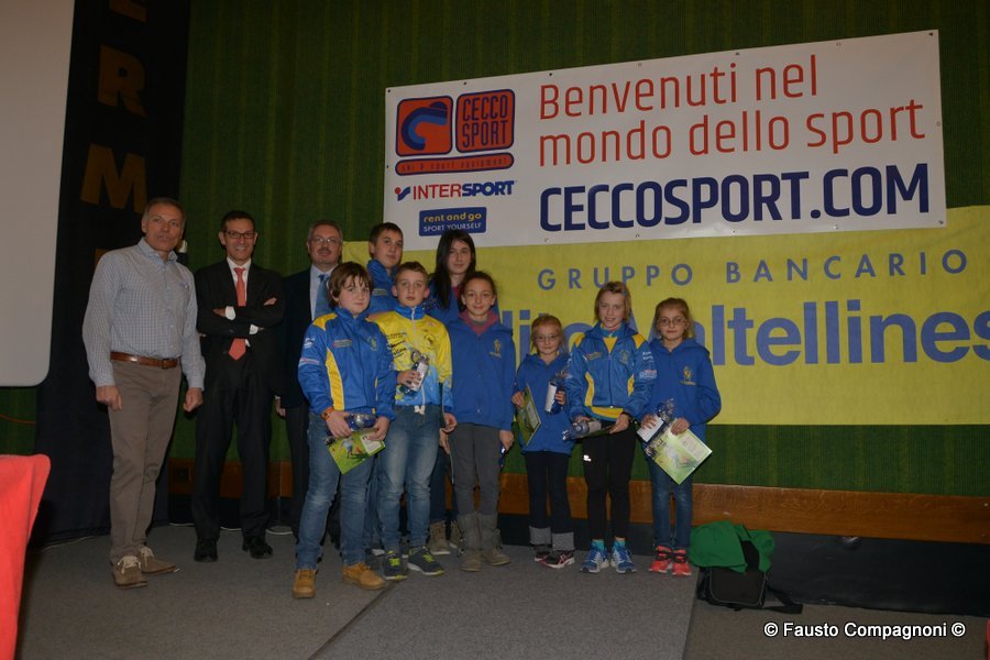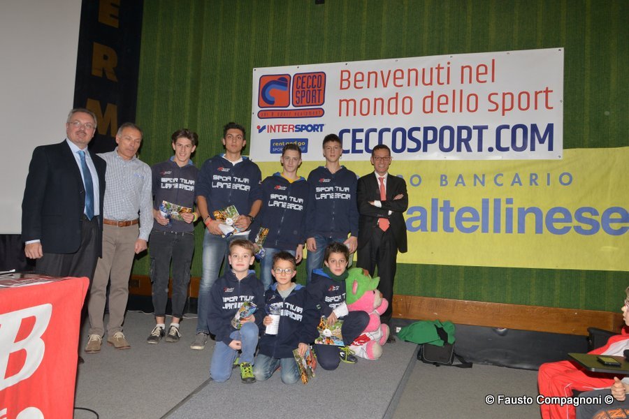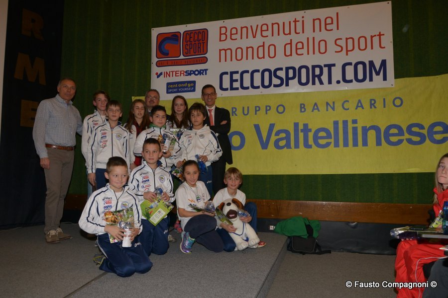Un evento che rappresenta una vera e propria vetrina dei protagonisti della stagione agonistica di atletica leggera, un momento per ritrovarsi e festeggiare un movimento veramente in saluto che ogni anno regala molte soddisfazioni ad atleti, società, dirigenti e tecnici. Ecco quindi che sul palco, applauditi dai 300 presenti, sono salite in primis le società che nel corso del 2015 hanno vinto i vari campionato provinciali di società oppure regionali o nazionali: Atletica Alta Valtellina, G.P. Santi Nuova Olonio, G.P. Valchiavenna, G.S. CSI Morbegno, G.S. Valgerola, C.O. Piateda, Pol. Albosaggia, A.S. Lanzada. Spazio poi ai 126 piccoli atleti, appartenenti alle categorie esordienti, ragazzi e cadetti, che hanno partecipato al numero minimo previsto di gare (una per ogni specialità dell’atletica ovvero corsa campestre, su strada, montagna e pista) per ottenere il premio del Trofeo Giovanile 2015 – Circuito Credito Valtellinese. A seguire il palco è stato occupato dai 158 campionati provinciali – sembrano tanti ma tante sono le categorie e le specialità – che hanno ricevuto la maglia “campione provinciale 2015”.