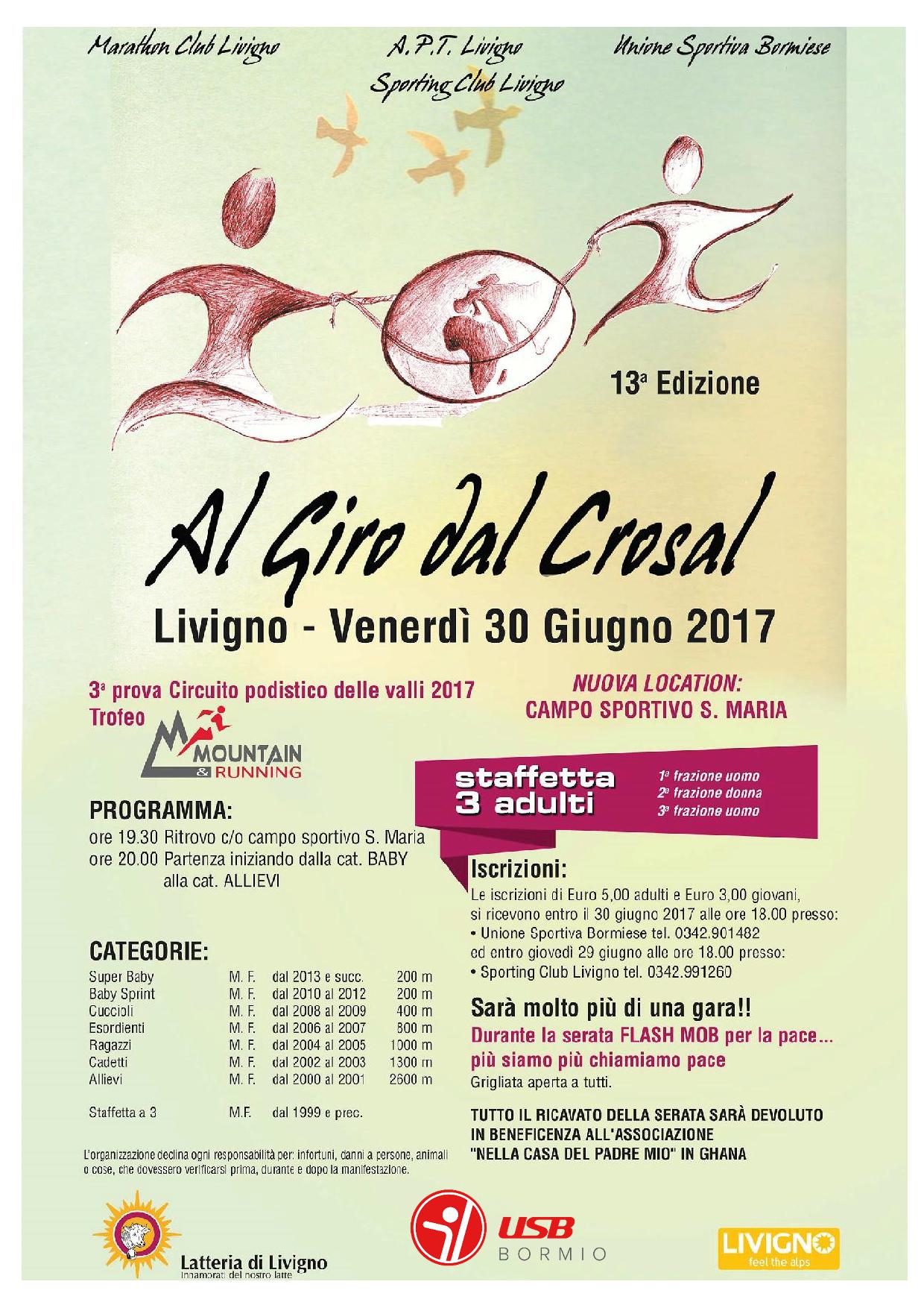 Tutti al Crosal !!! Questa sera ore 19.00 grandi e piccini potranno sfidarsi in alta quota lungo l’anello del Crosal, a Livigno. Marathon Club Livigno, A.P.T. Livigno, Sporting Club Livigno in collaborazione con l’Unione Sportiva Bormiese vi aspettano anche con un goloso servizio ristoro. Non mancare.